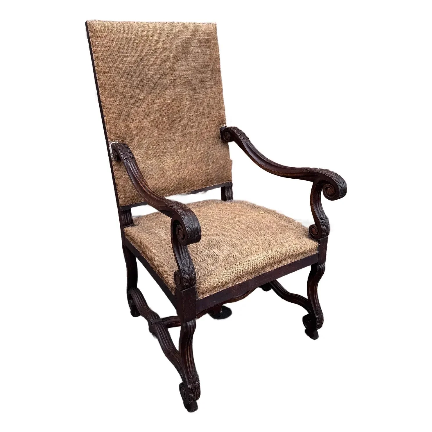 This is a lovely French Classic Os De Mouton Arm Chair that was created early 1900's or before. Antique French Louis XIII armchairs were handcrafted of walnut wood from Carcassonne France.